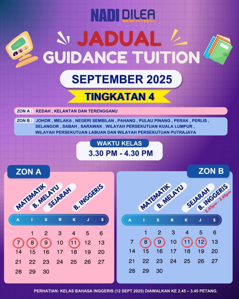 Berikut merupakan jadual-jadual aktiviti NADI x DiLea yang akan berlangsung sepanjang bulan September 2025 ini: