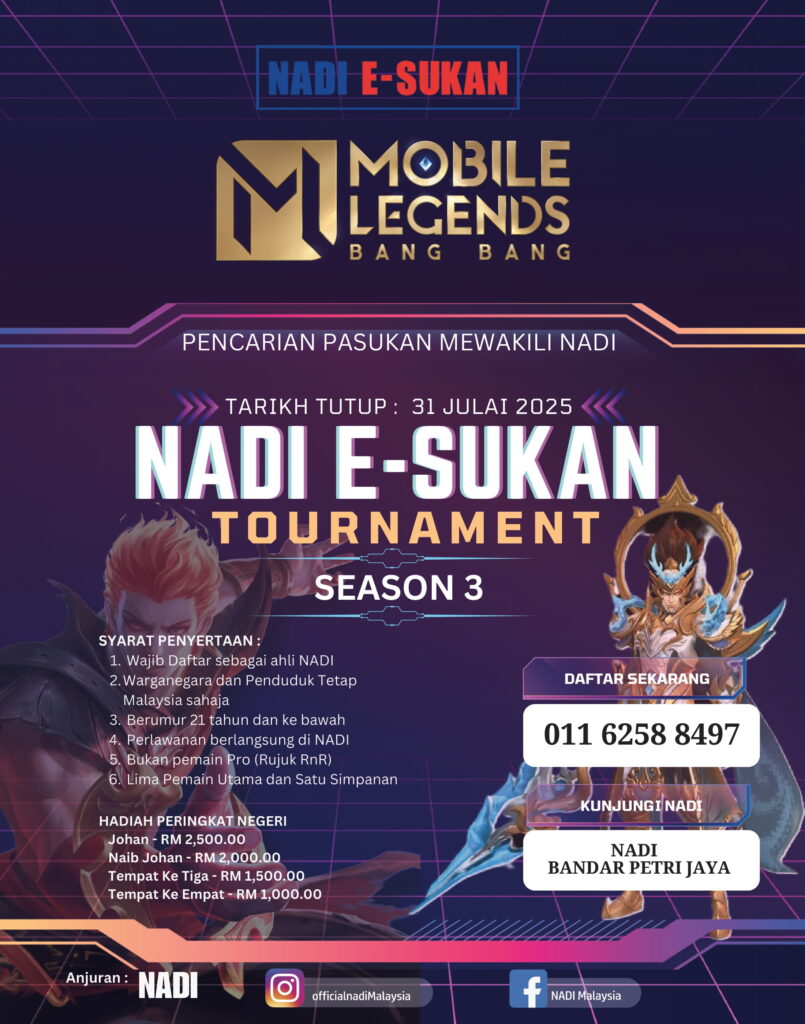 Sertai 𝐍𝐀𝐃𝐈 𝐄-𝐒𝐔𝐊𝐀𝐍 𝐓𝐎𝐔𝐑𝐍𝐀𝐌𝐄𝐍𝐓 𝐒𝐄𝐀𝐒𝐎𝐍 𝟑 sekarang dan rebut peluang mewakili NADI ke peringkat negeri!