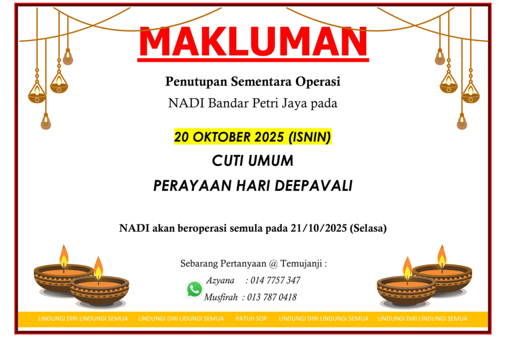 Ditutup pada 𝟐𝟎 𝐎𝐤𝐭𝐨𝐛𝐞𝐫 𝟐𝟎𝟐𝟓 (𝐒𝐞𝐥𝐚𝐬𝐚) bersempena 𝐂𝐮𝐭𝐢 𝐔𝐦𝐮𝐦 𝐏𝐞𝐫𝐚𝐲𝐚𝐚𝐧 𝐇𝐚𝐫𝐢 𝐃𝐞𝐞𝐩𝐚𝐯𝐚𝐥𝐢